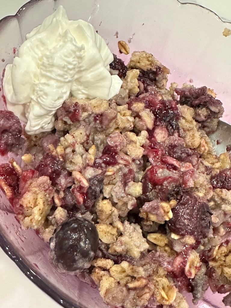 On to my second share of the new year. My eczema has been insane. My hands are cracked and bleeding. I have it on my eyelids sporadically this past month?! It has been horrible. I think it might be milk but not 100% sure. There is a possibility it is the dish soap I switched to. I find if avoid cows milk it gets better fairly quickly though so I am currently avoiding both. I am trying to use almond milk more but don’t love it in breakfast cereal. Enter baked oatmeal and overnight oats! I have made baked pumpkin pie oatmeal forever. I love it. I have made overnight oats off and on for the past year. But I tried this blueberry baked oatmeal and I am in love! I use almond milk instead of cows milk and don’t have any issues. I did have to use light brown sugar since it was all I had and then I added a tiny amount of clove and nutmeg but otherwise followed the recipe. My hands have been looking so much better and I get to eat a very yummy breakfast!
